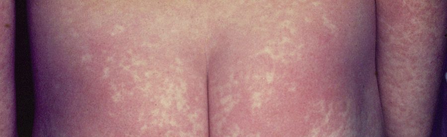 De vijfde ziekte begint met huidafwijkingen, vaak in het gezicht, met soms koorts, ziek zijn of gewrichtsklachten.  De fijne roze vlekjes zijn als eerste zichtbaar in het gezicht, met typisch rode wangen. Daarna verspreidt de uitslag zich over de romp en armen en benen. De vlekjes kunnen jeuk geven. Een klein deel van de kinderen krijgt ook klachten van de gewrichten. De ziekte is besmettelijk in de week voordat de vlekjes verschijnen. Als de vlekjes zichtbaar zijn kan uw kind de ziekte niet overdragen aan anderen.